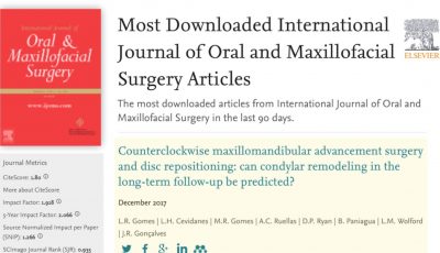 Um dos artigos da tese de doutorado da Dra. Liliane Rosas Gomes intitulado “Counterclockwise maxillomandibular advancement surgery and disc repositioning: can condylar remodeling...